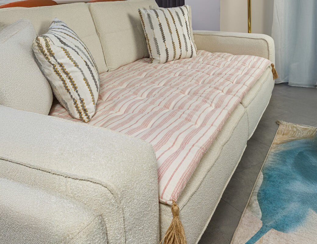 Cream Striped Custom Size Linen Sofa Topper Slipcover Pet Friendly, Washable, Stain Resistant, Non Slip Furniture Couch Protector Sofa Pad