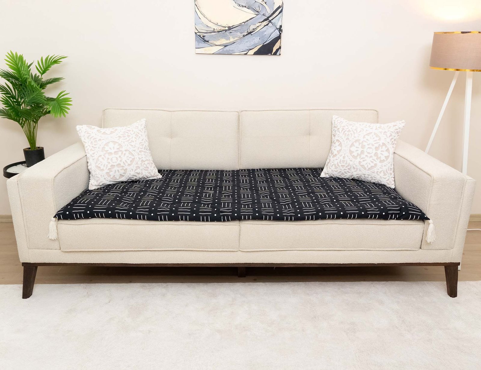 Boho-Tribal Custom Size Linen Sofa Topper Slipcover Pet Friendly, Washable, Stain Resistant, Non Slip Furniture Couch Protector Sofa Pad