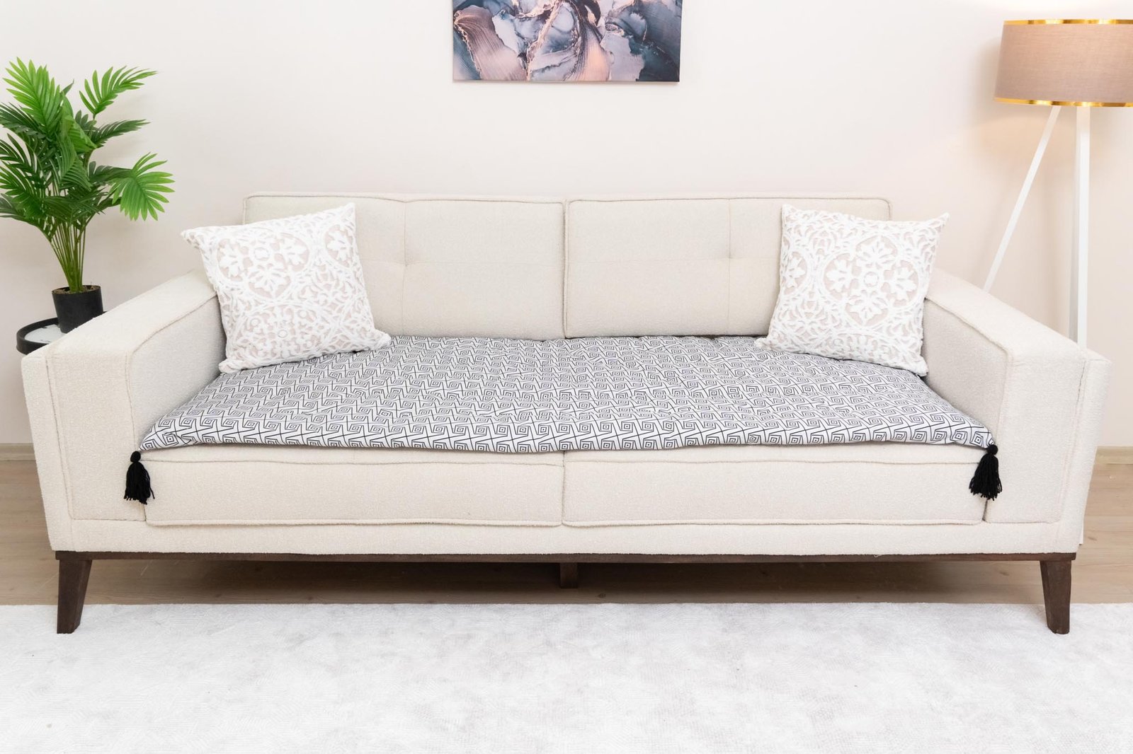 Boho-Tribal Custom Size Linen Sofa Topper Slipcover Pet Friendly, Washable, Stain Resistant, Non Slip Furniture Couch Protector Sofa Pad