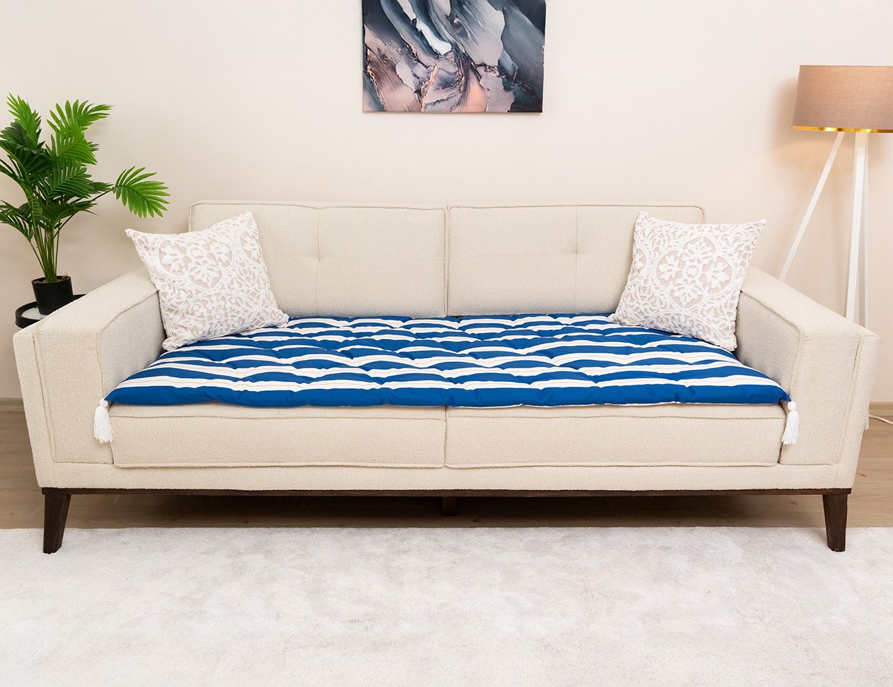Blue Line Art Custom Size Linen Sofa Topper Slipcover Pet Friendly, Washable, Stain Resistant, Non Slip Furniture Couch Protector Sofa Pad